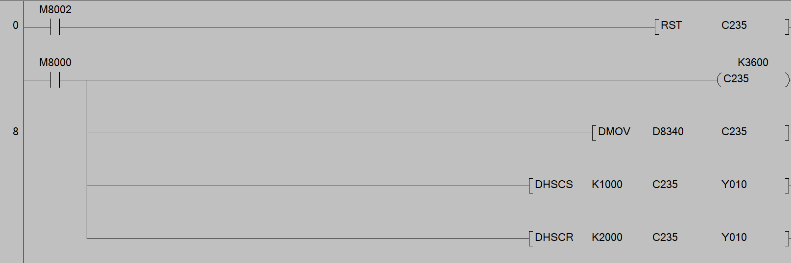 去掉DMOV D8340 C235這一步,將輸出脈沖并聯一路到X0,讓C235真正跑起來試一下!