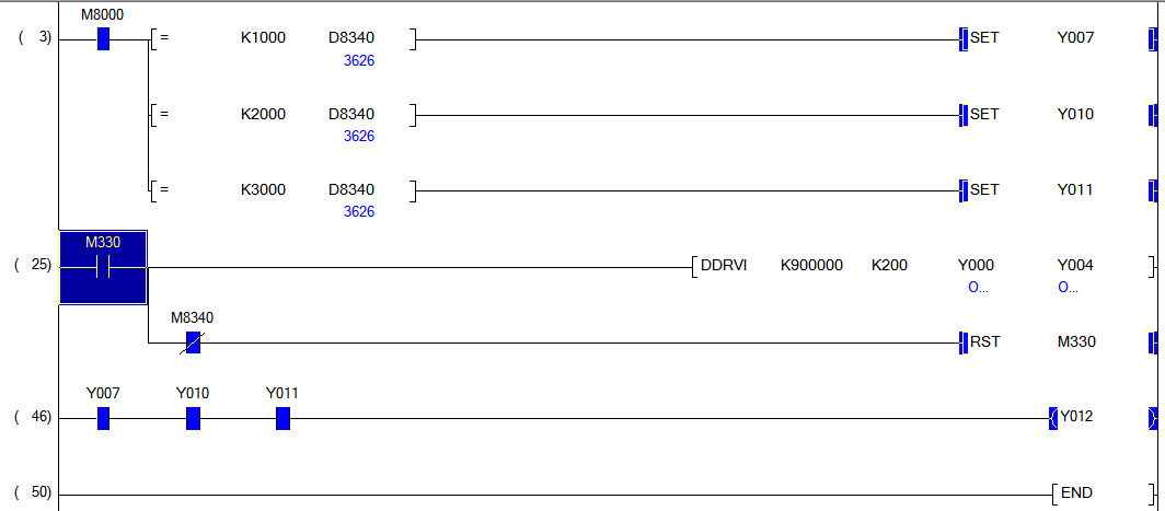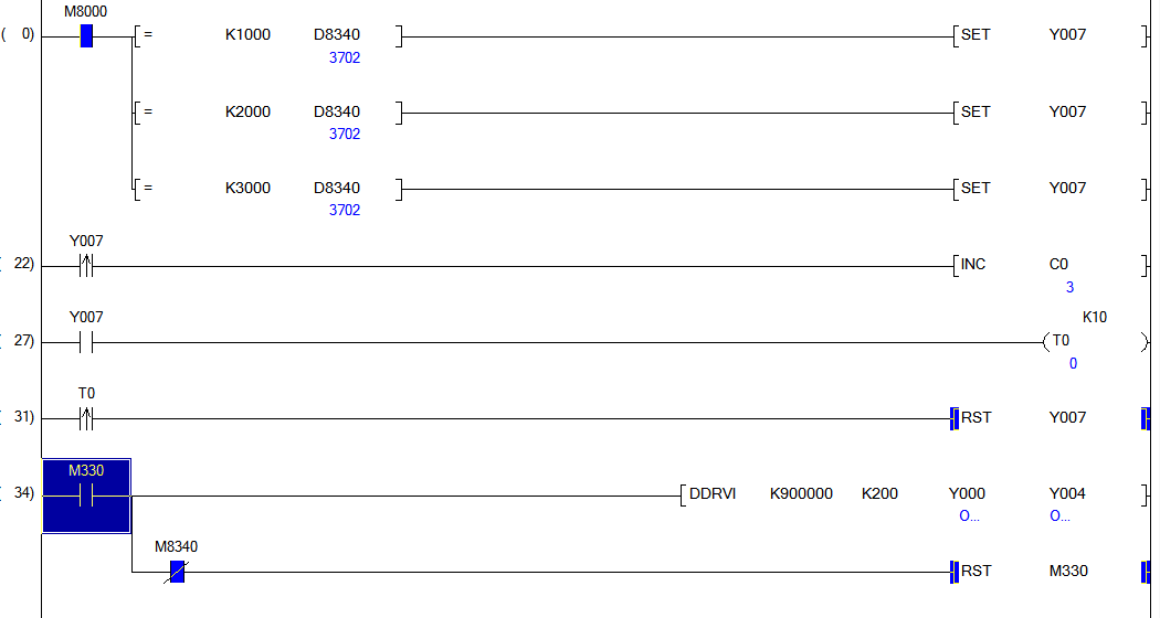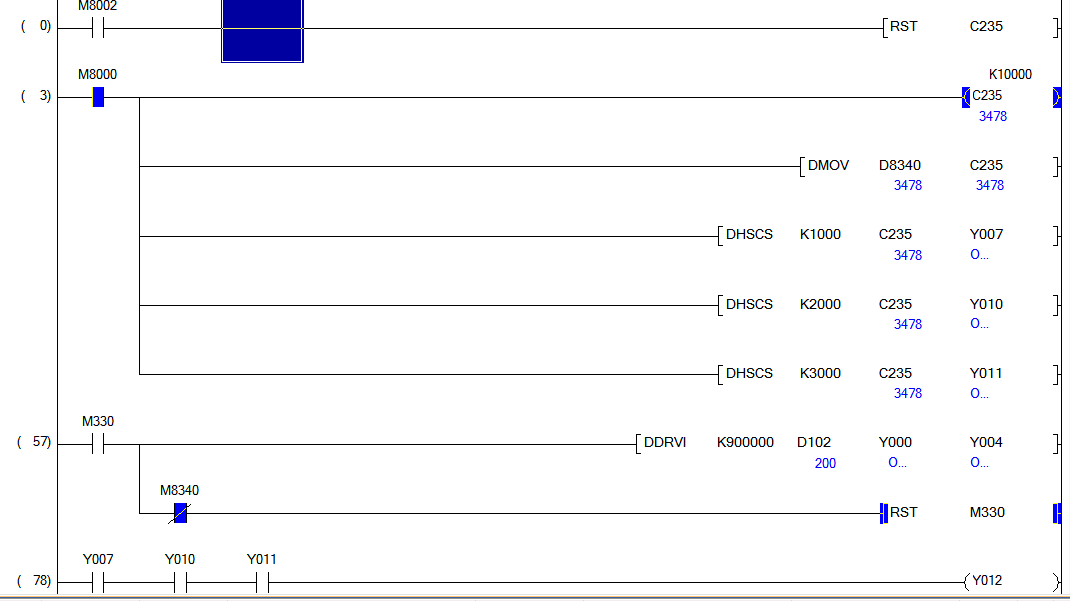 用高速比較指令輸出,還有就是程序怎么這樣寫兩個SET Y7呢?雖然SET沒有雙線圈,但也會出現程序不穩定情況。