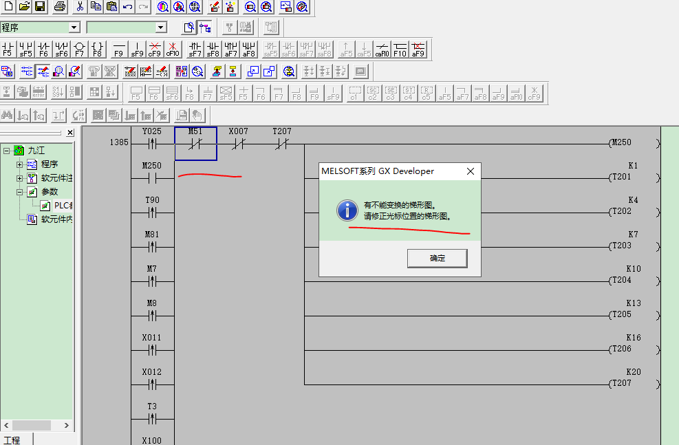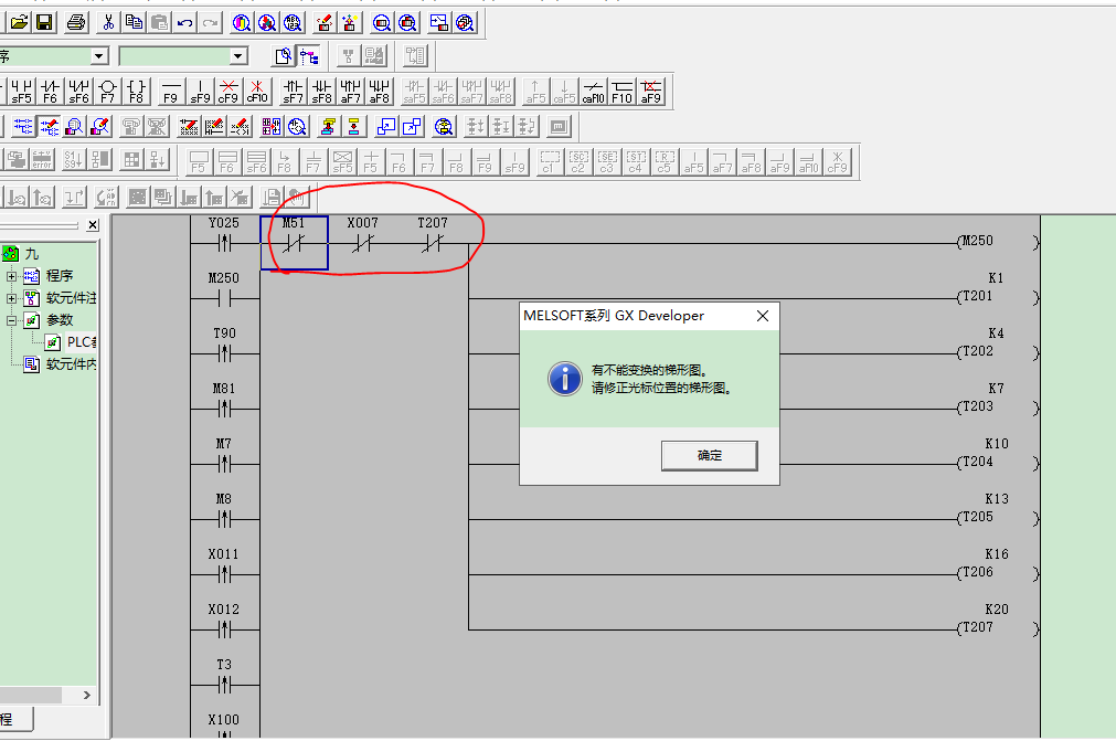 問題2:這個程序有錯誤嗎提示這個    有不能變換的梯形圖,請修正光標位置的梯形圖