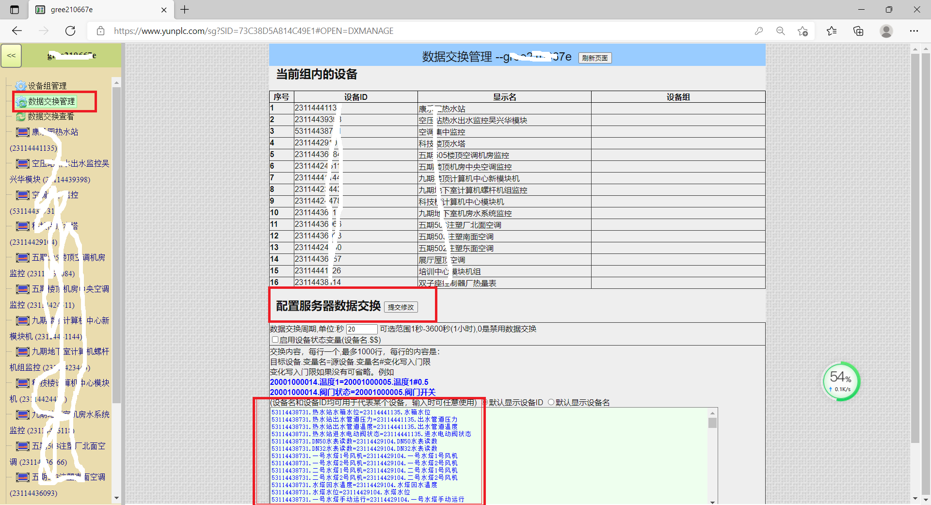 在巨控云服務器上開通一個組賬號,將需要交換數據的模塊放到一個組里,在數據交換區域寫