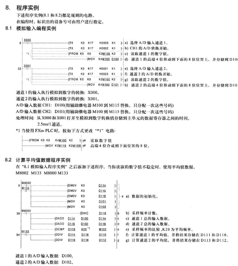三菱FX2N-2AD二個通道不能用分開用二個平均采樣嗎,今天弄了好久也沒弄好,二個通道只能寫入一個采樣,還有按照三菱使用手冊寫的程序, 如果同時用二個輸入通道1與通道2也會出現錯亂,