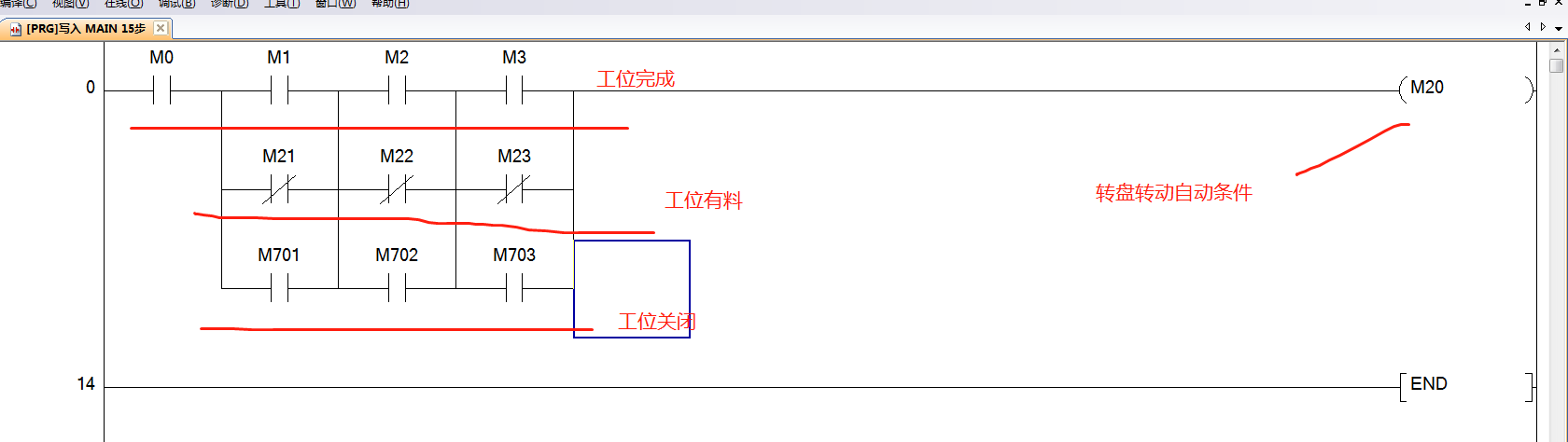 第一個寄存器,D0,D1……D11,哪一個工位不合格就置位,比如D1不合格,那么就D1,0等于1,第3工位不合格,那D2.1等于1,工位有沒有料靠M0到11來做,最后判斷的時候,D10大于0的時候,就是不合格…… ![]() |