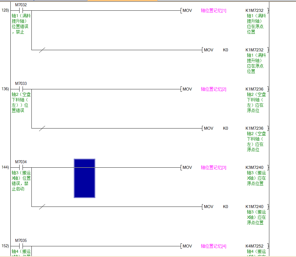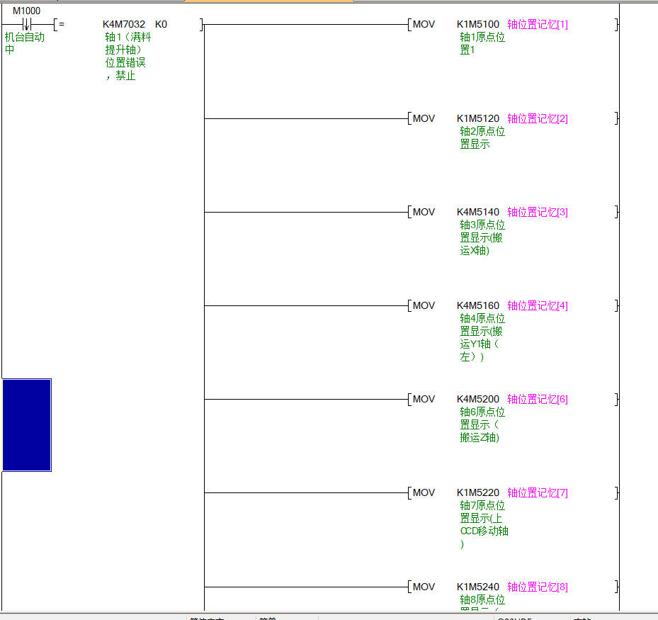 引用引用第18樓隱姓埋名于2023-07-14 10:21發(fā)表的 :自動條件斷開的時候,記錄軸當(dāng)前的位置,主要是記錄到達(dá)設(shè)定點(diǎn)位的位置,如果是非設(shè)定點(diǎn)位,這個沒關(guān)系,自動條件接通后,會繼續(xù)定位。 按啟動的時候先將當(dāng)前所有軸的位置與記憶位置進(jìn)行比較,如果不一樣,就反饋出記錄的位置在哪里,提示軸應(yīng)該在什么位置,這時手動定位過去就行了。 至于氣缸狀態(tài),吧手動自動分開,檢測到手動信號接通,提示在手動中,需要人為處理掉。 以上個人思路 歡迎討論指正。