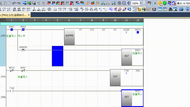 看了一下你的程序,有兩個ADPRW,不要一直寫,寫完成要復位不要再寫;第一個是設定整數顯示,開機寫一次就好了;第二個是批量寫入,也不要一直寫,