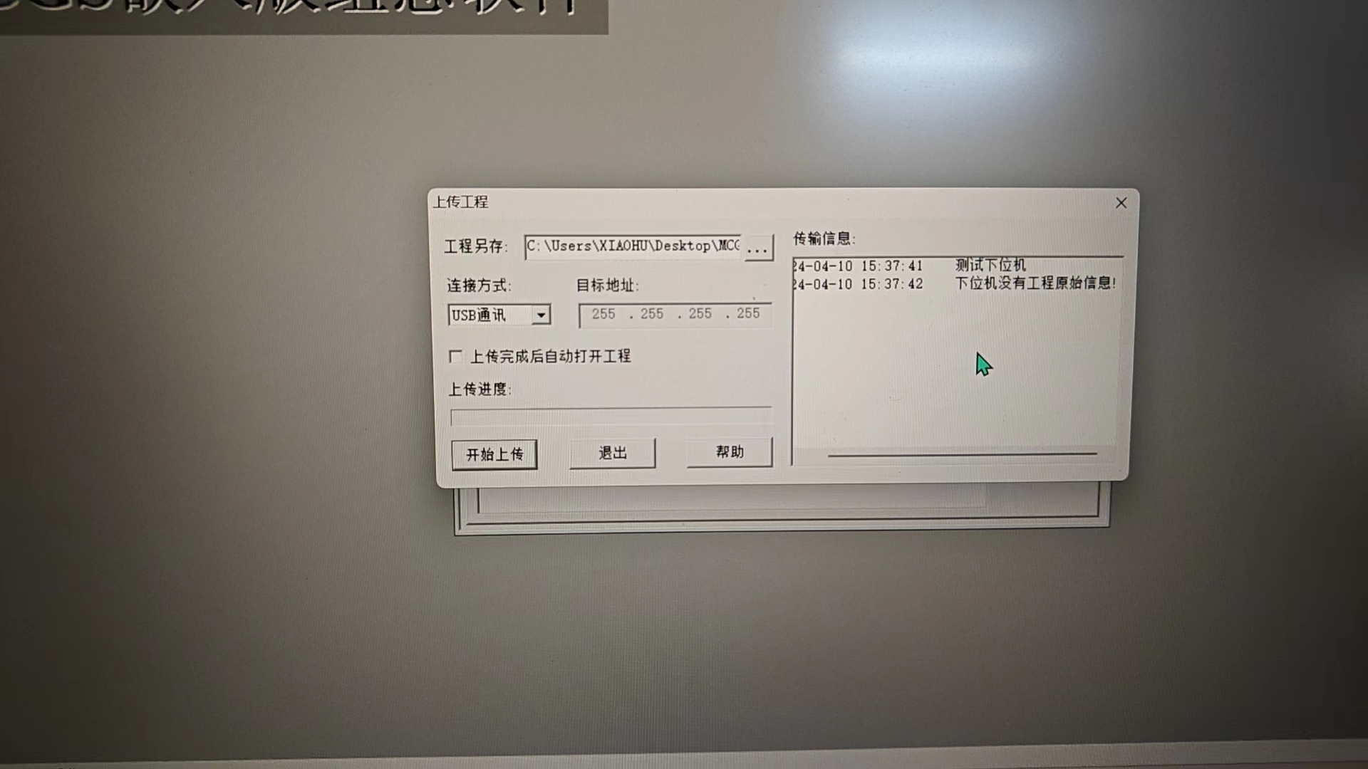 可以正常上電,但是現在IP地址不知道是多少,用USB提取顯示“下位機沒有工程原始信息”
