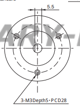 編碼器的安裝孔是指用于固定編碼器到機械結構上的孔,這些孔通常設計為標準尺寸以兼容特定的螺絲或緊固件。提到“3-M3 Depth 5・PCD28”,這具體指的是編碼器上安裝孔的細節: