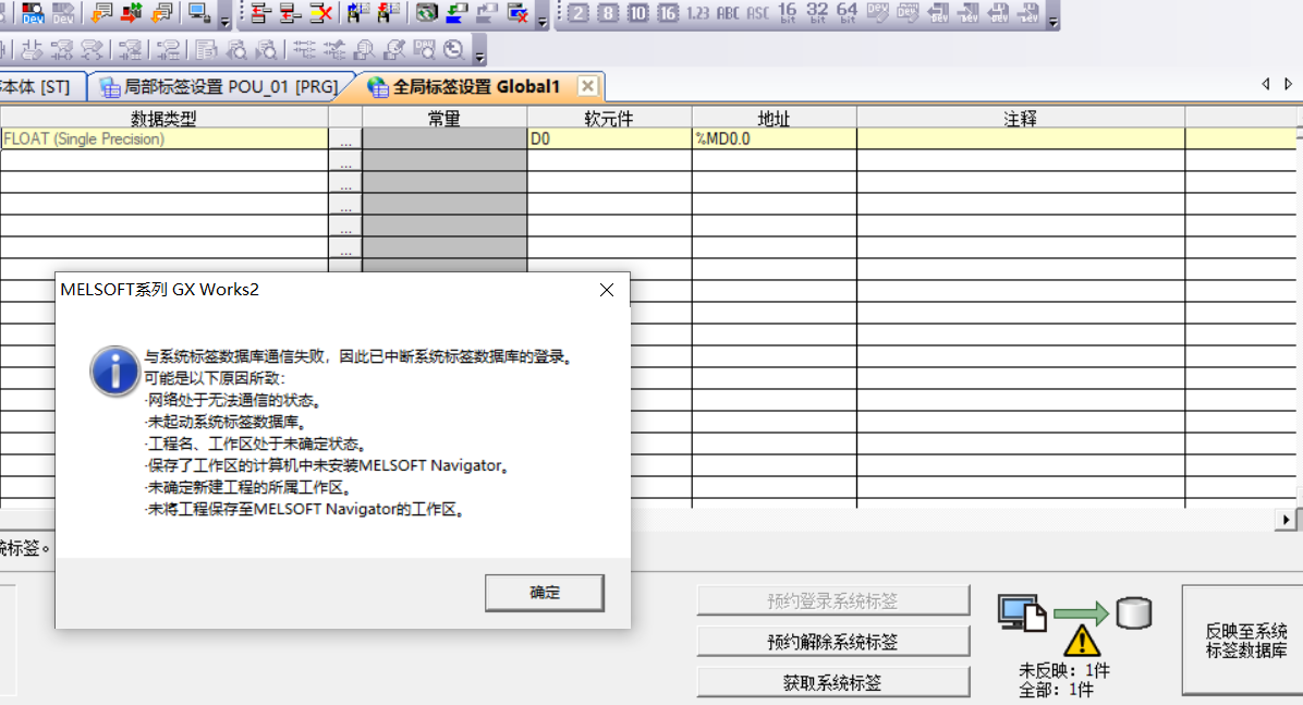 選中黃色背景的標簽,點擊下面的“預約解除系統標簽”,標簽全部無填充背景就不會報錯了,建標簽、編程不需要連接PLC