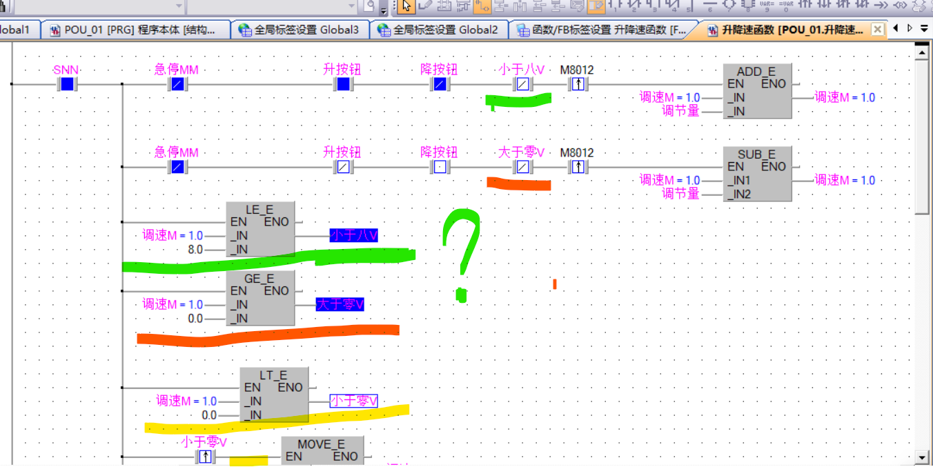 是不是小于某個電壓時可以使用調速,既然下面已經接通,那么上面用作輸入的不用取反了吧