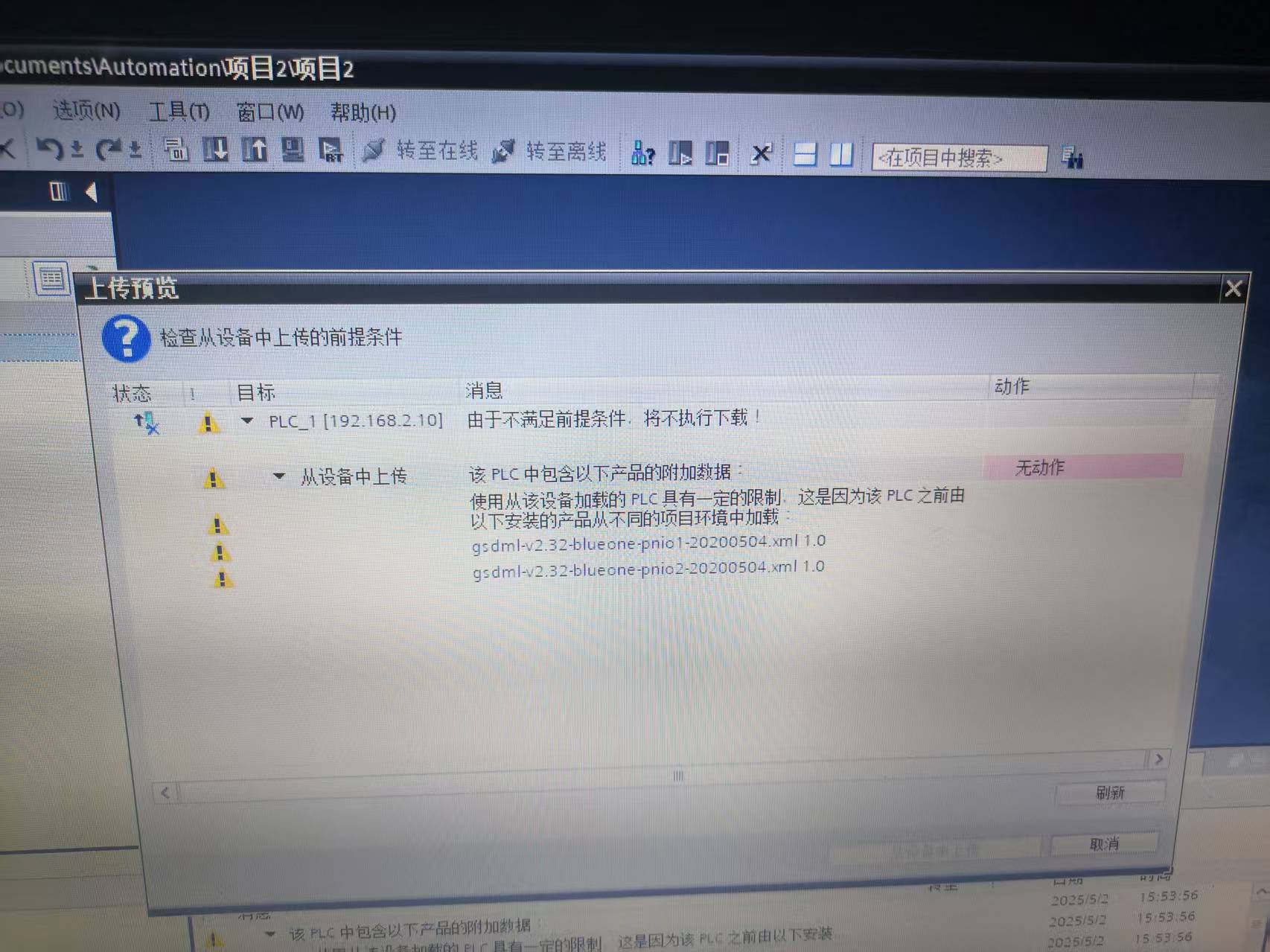 第一次接觸西門子系列,1500plc上傳程序時提示如圖,程序不能上傳。求論壇里的師傅給予指導。!謝謝。