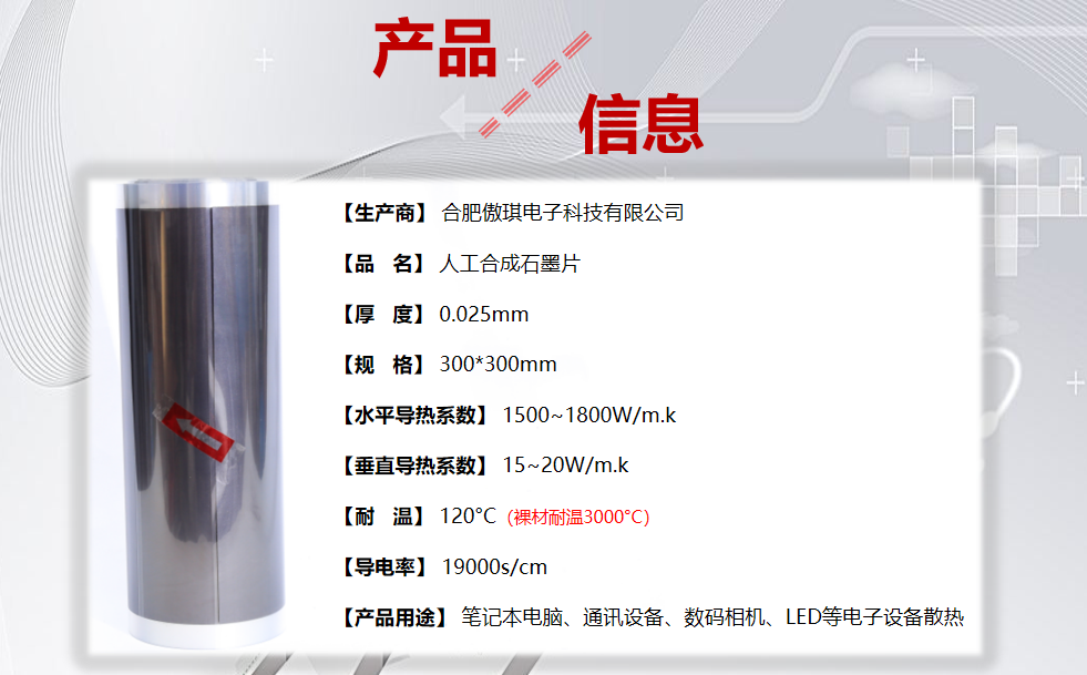 傲琪人工合成石墨片針對這些需求提供了全面解決方案。該材料采用先進的高溫石墨化工藝制備,形成了高度取向的晶體結構,實現了卓越的面內導熱性能。