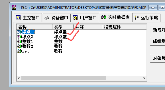 第二步,做一個畫面,把剛才的變量顯示出來。注意第一個浮點數要可輸入的,其它顯示即可。在下載到真實觸屏前,需要加上導入導出按鈕,方便把處理好的對應表放到觸屏里。應用文件復制腳本,詳細請在軟件內查看幫助文件,不多介紹了。