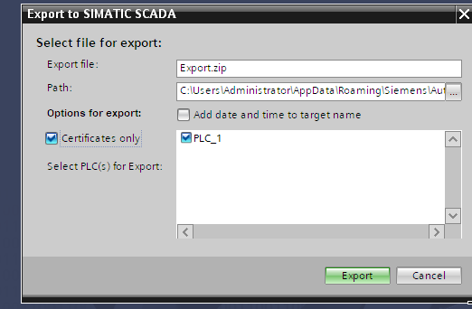 如官方講解的上圖所示,當你遇到必須要使用安全通信才可以連接的時候,請先準備一下SIMATICSCADA_Export這個軟件(文末也有鏈接)。版本要對應你的博途版本。安裝步驟不多贅述。