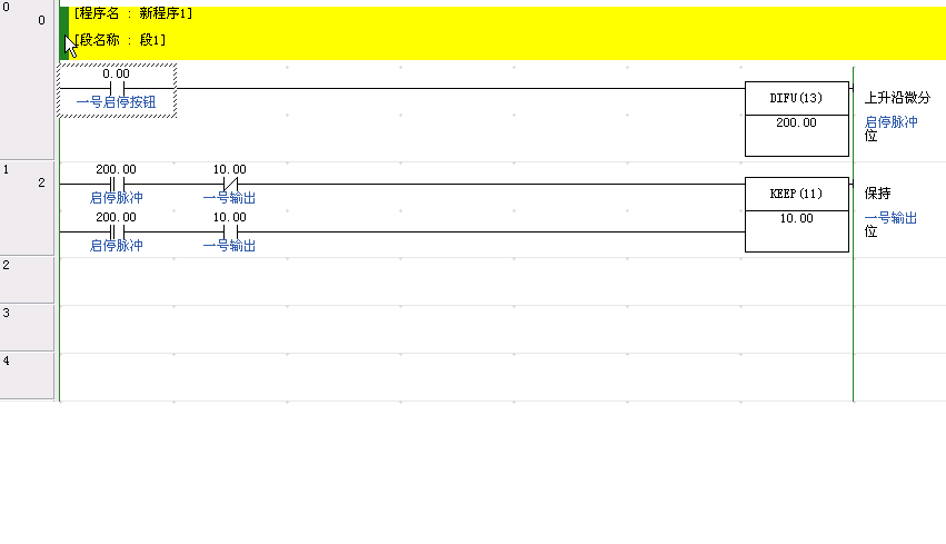 好像三菱的有專門的指令,omron的好像沒有。編了一個電機的控制梯形圖,其他電機控制類推。沒測試不知對不對。