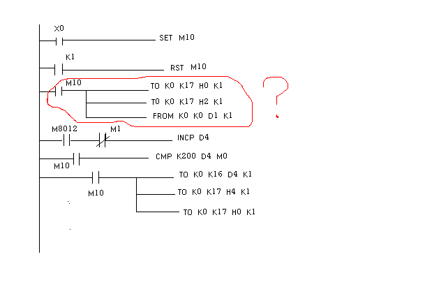 三菱FX2N,變頻器三菱E700,參數設P79=4,面板啟動,外調頻,現按下X0,和面板RUN,電機轉,但按X1不停,程序不明白,希望大家指教謝謝。圖中紅圈部分有何用?