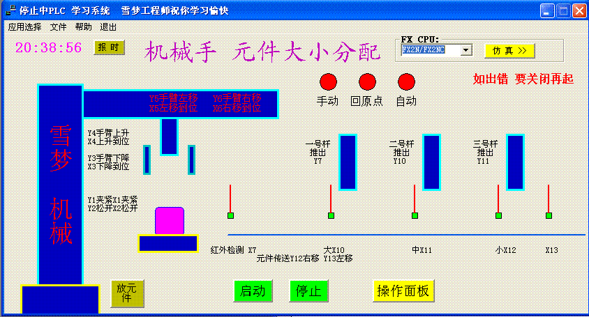 第二步啟動機械手PLC仿真模擬學習軟件,點擊仿真按扭進行。