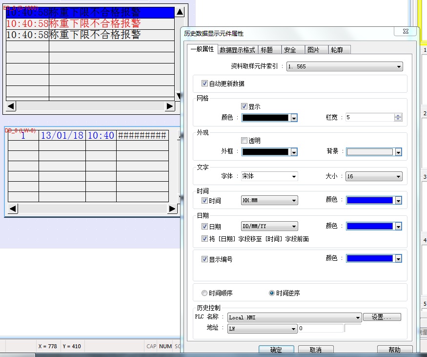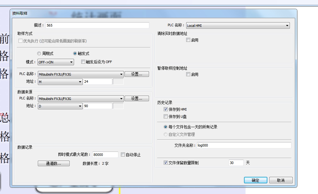 請教一下家人,我做的這個資料取樣為什么在屏上沒有顯示!跟有神精病一樣,有時突然就有了,一有就會觸發一次,就會顯示7組數據在屏上,是哪里出了問題!